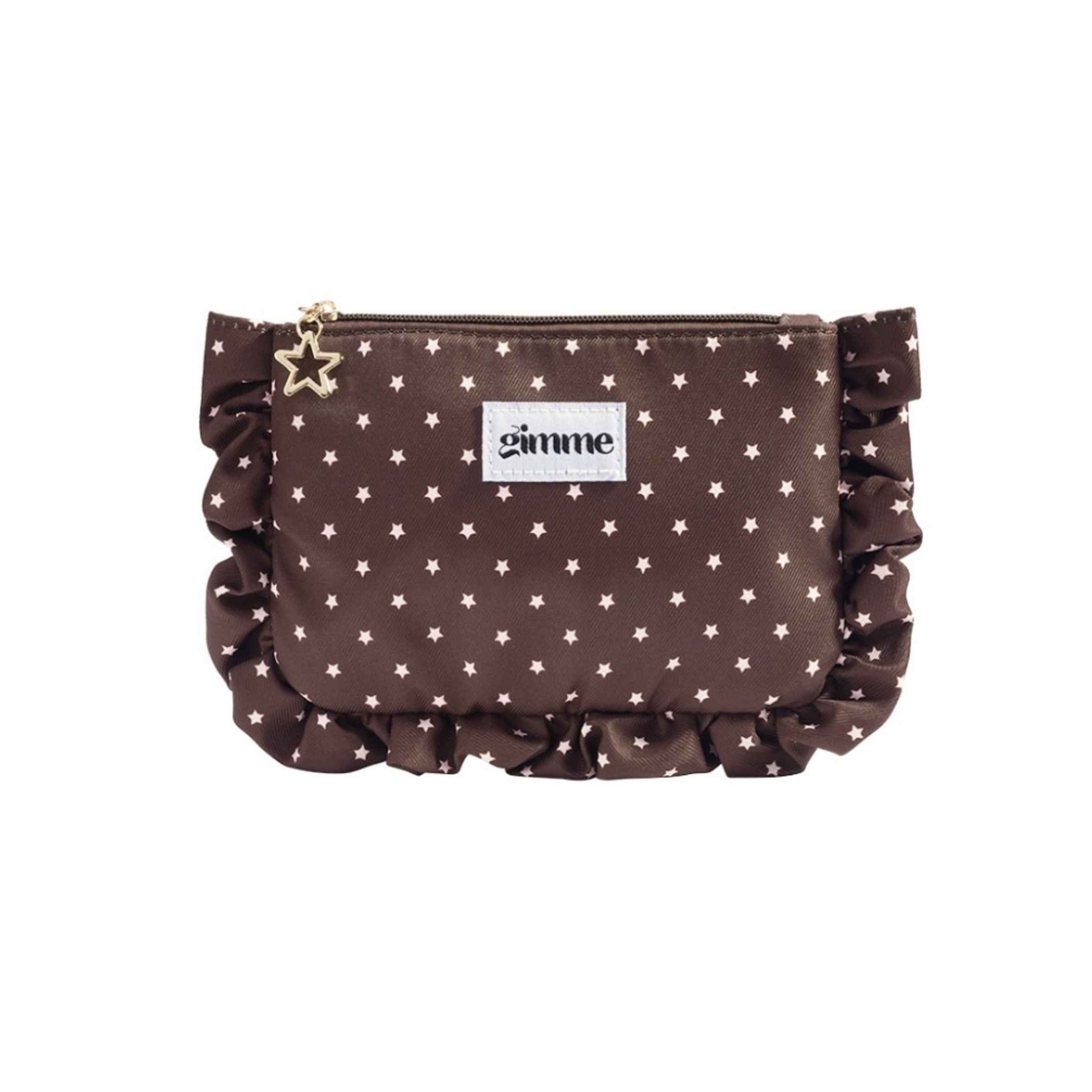 Plat make up tasje met strepen print en ruches.