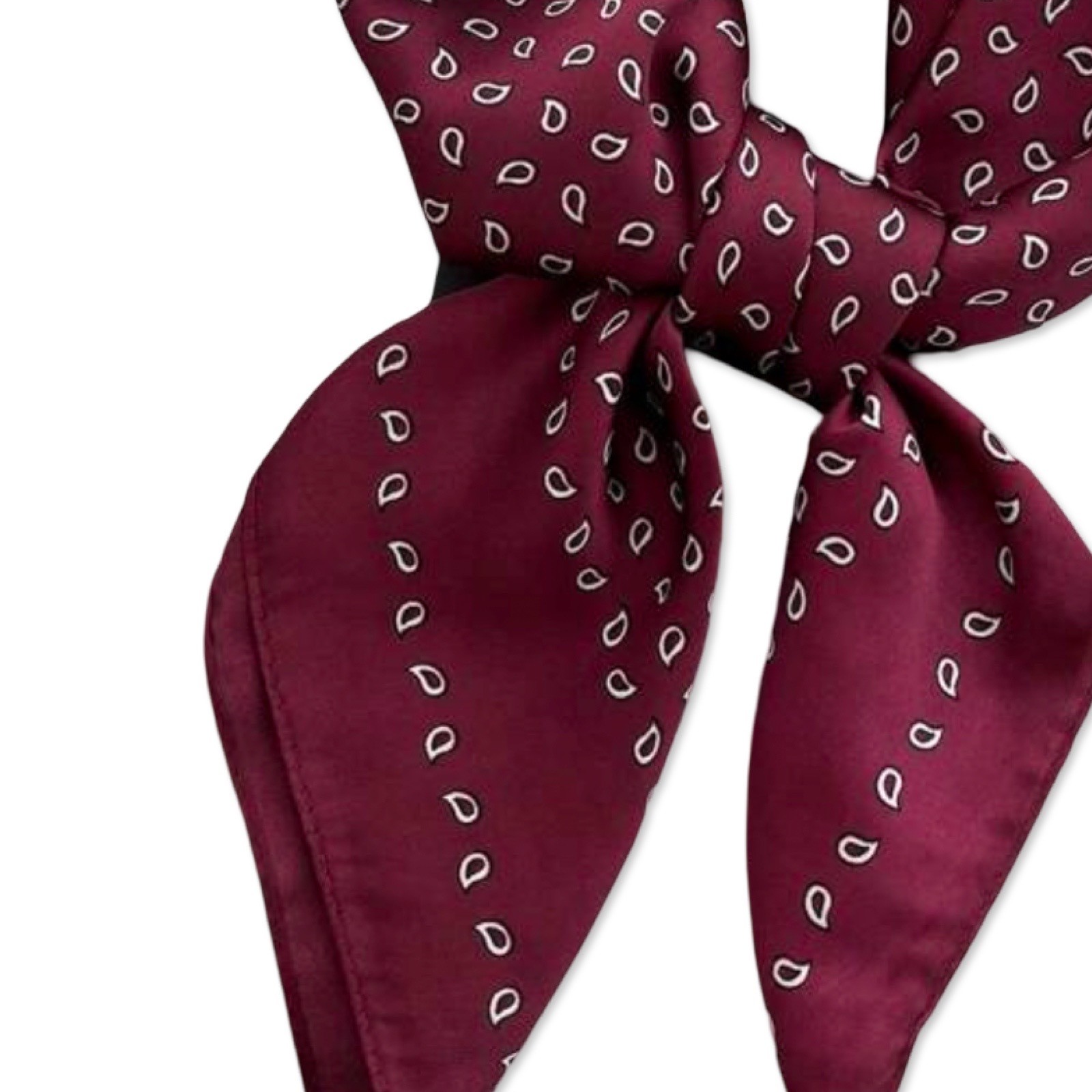 Prachtige bandana in burgundy. Knoop dit sjaaltje om je hals of draag hem aan je tas.