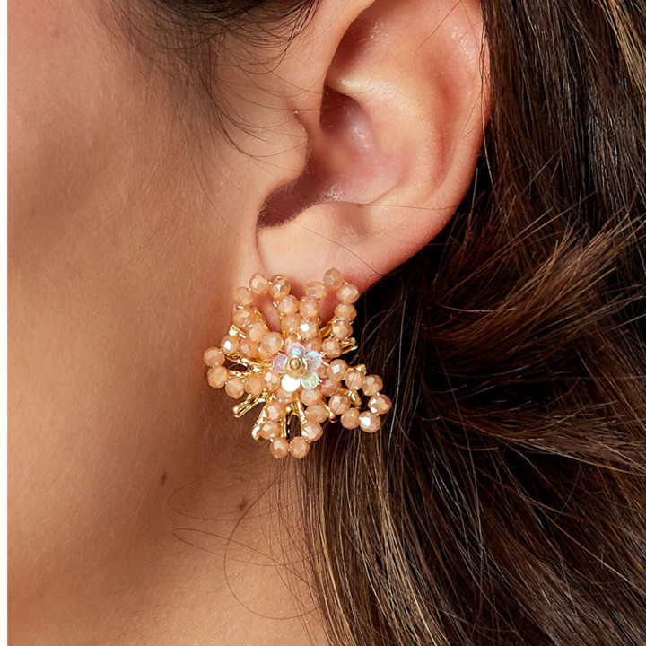 Vrolijke bloem oorbellen gemaakt van kraaltjes.