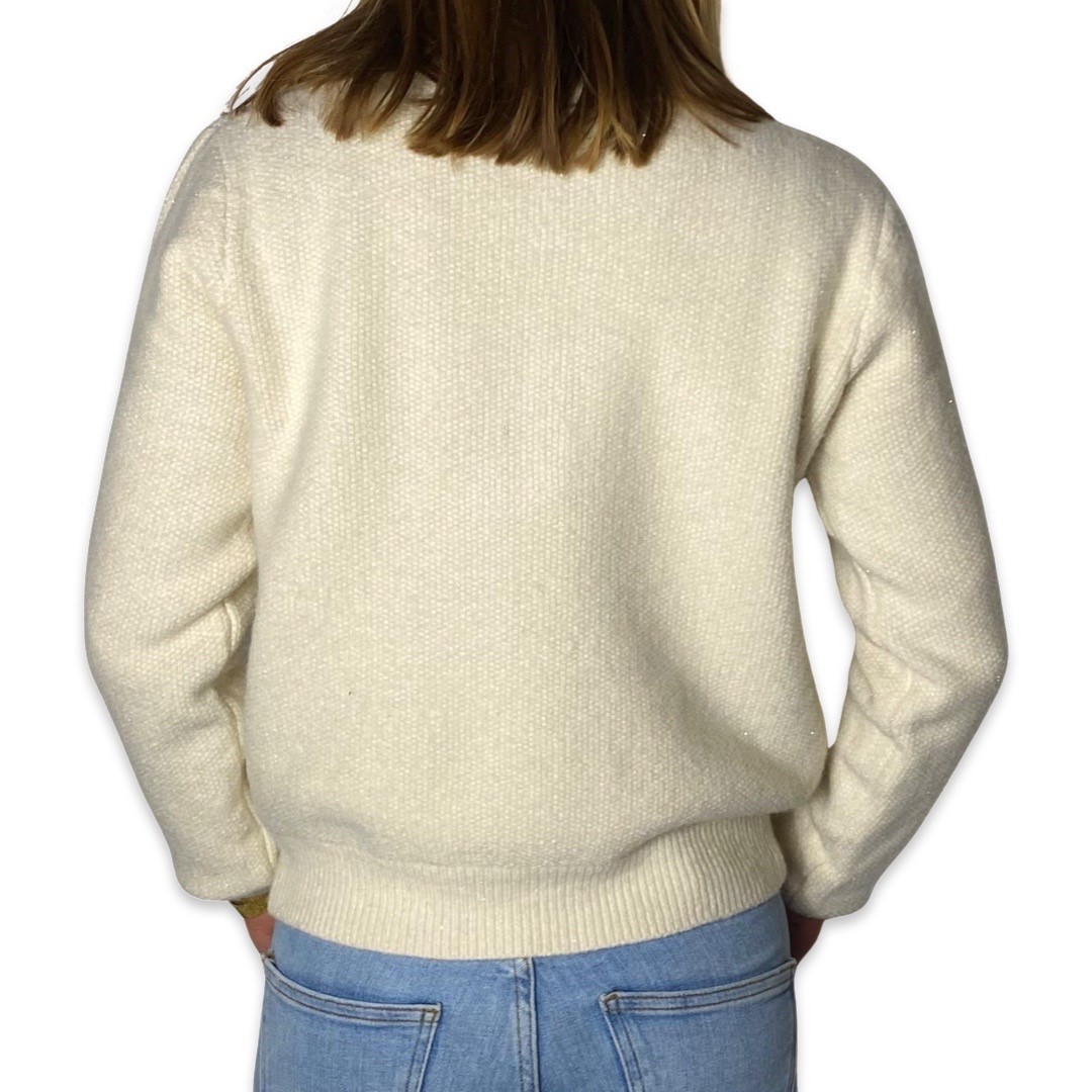 Dik gebreid vest met lurex draad en gouden knopen
