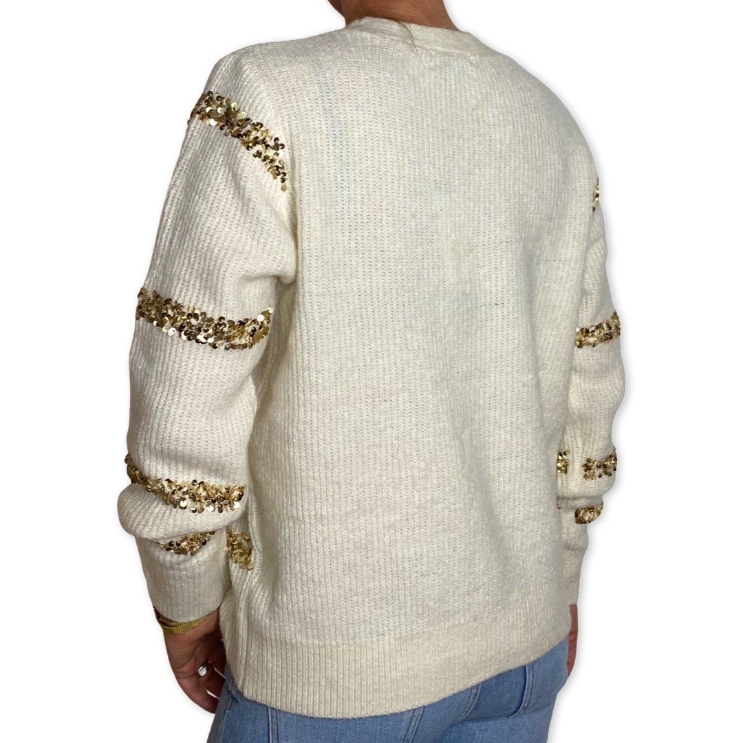 Prachtige vest met pailletten strepen en diepe V-hals verkrijgbaar in 3 kleuren.