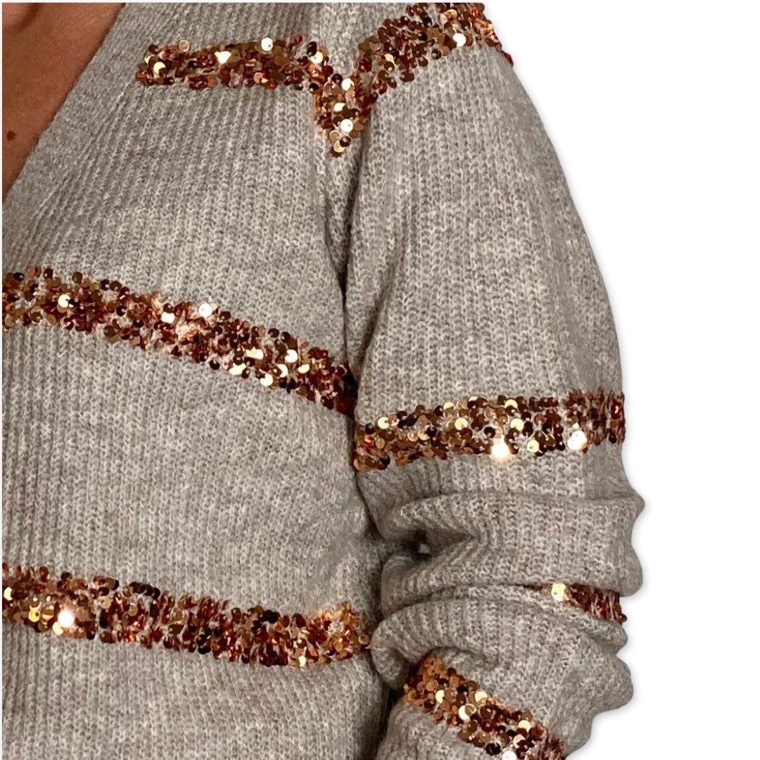 Prachtige vest met pailletten strepen en diepe V-hals verkrijgbaar in 3 kleuren.