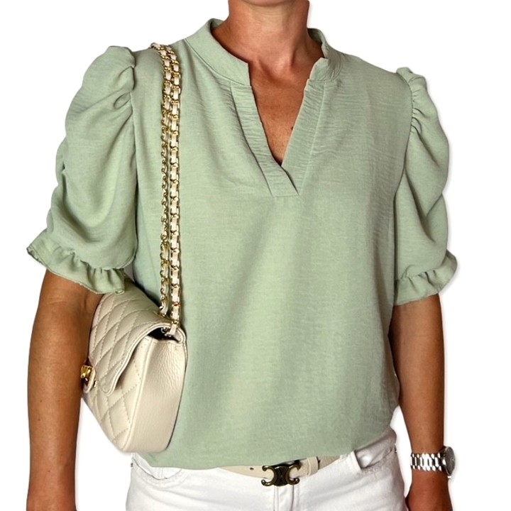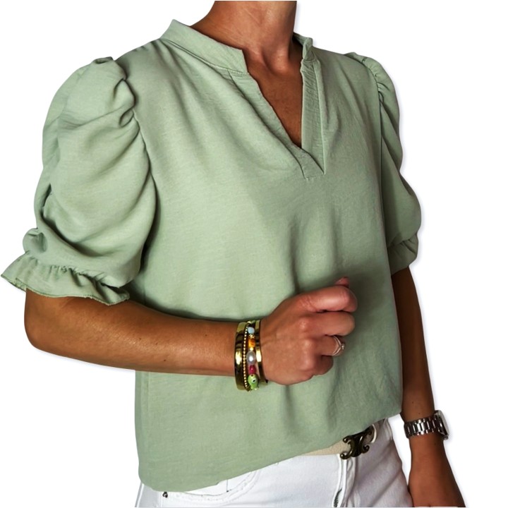 Blouse van een fijne soepele stof met v hals en geplooide mouwen