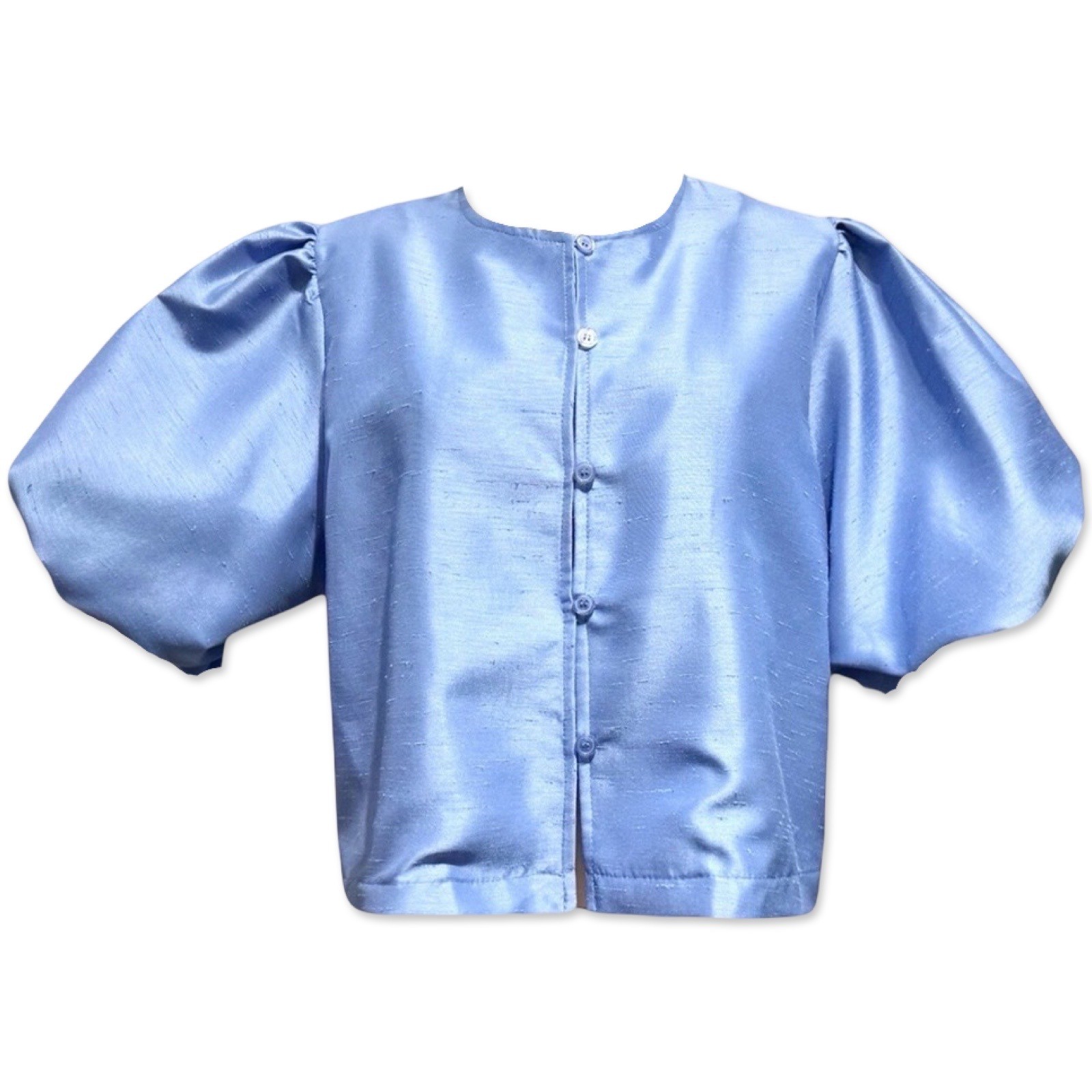 Blouse met korte ballon mouwen en knoopjes sluiting.