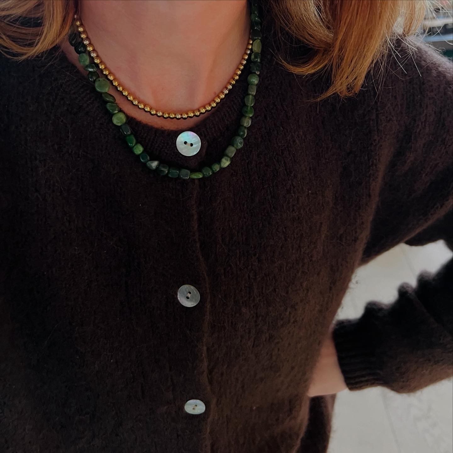 Ketting van groene natuurstenen kralen met gouden stainless steel sluiting.