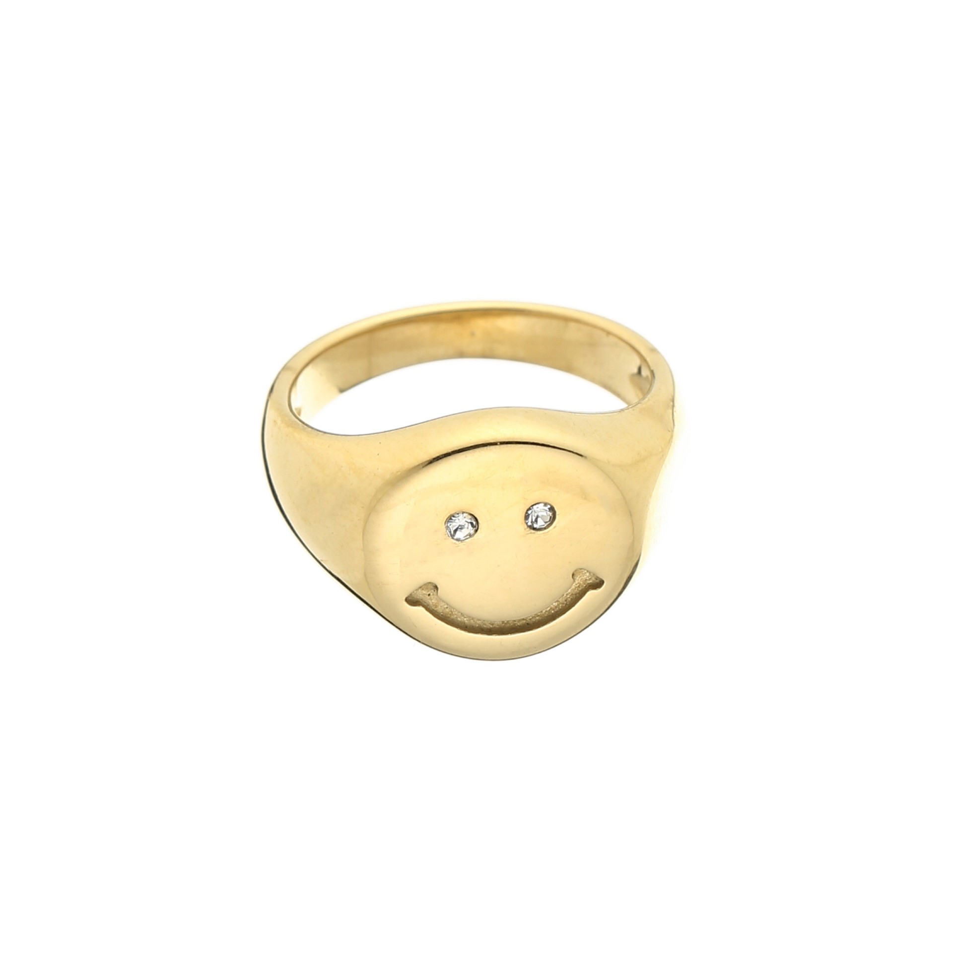 SMILEY ring met stenen ogen. De ring is gemaakt van stainless steel en verkrijgbaar in ringmaat 16,17 & 18