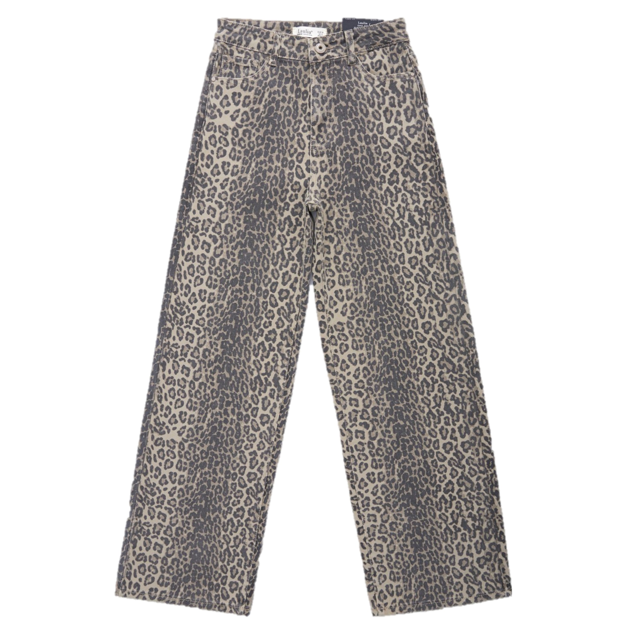 Stoere jeans met faded leopard print. De jeans valt in de taille en heeft een wijde rechte pijp.