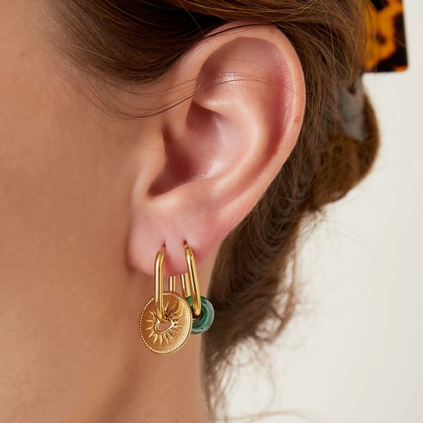 Deze oorbellen zijn gemaakt van roestvrij staal met een gouden laagje. Het laagje goud dat over de sieraden is aangebracht is 18 karaats en heeft een dikte van 2.5 micron. Deze oorbellen zijn nikkelvrij.