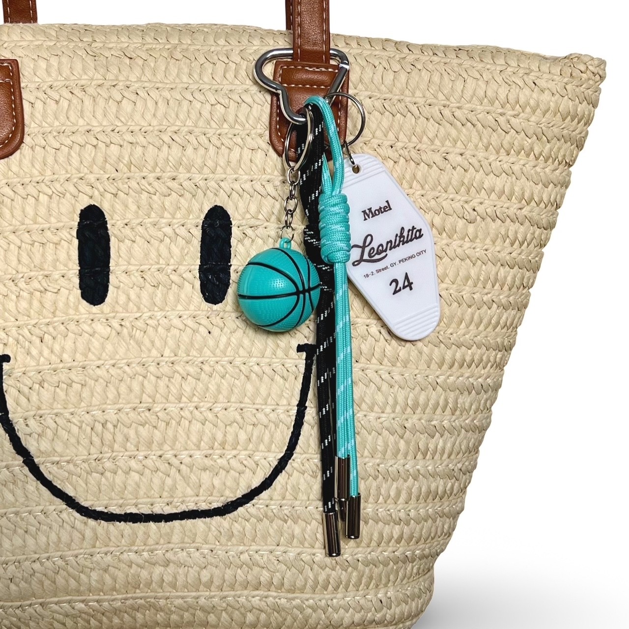 Deze bag charm is een combinatie van verschillende koordjes met een keychain en basketbal